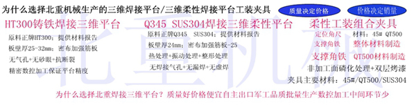 4、三維焊接平臺(tái)制造廠家選擇:正規(guī)品牌的三維柔性組合工裝夾具制造廠家 會(huì)選擇優(yōu)質(zhì)的品牌鑄造材料供應(yīng)商 保證鑄造的三維焊接平臺(tái)面板厚度保證 加強(qiáng)筋板多 沒(méi)有鑄造氣孔和砂眼 進(jìn)行嚴(yán)格的熱處理時(shí)效消除鑄造內(nèi)應(yīng)力 表面進(jìn)行噴丸清砂處理 打防銹底漆