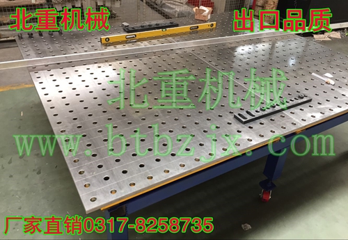 3、精確性:柔性焊接平臺再2噸左右1M2集中載荷的作用下,其變形量不超過0.50mm,而再均布載荷作用下,其變形量只有0.024mm,完全可以滿足絕大多數(shù)的焊接及裝配加工的需要,其組建的精度高,工作平臺定位孔中心公差保證在0.05mm以內。這種高精度將會反映在用戶所加工的產品中,因此此工作臺也可用作檢具的基準平臺。